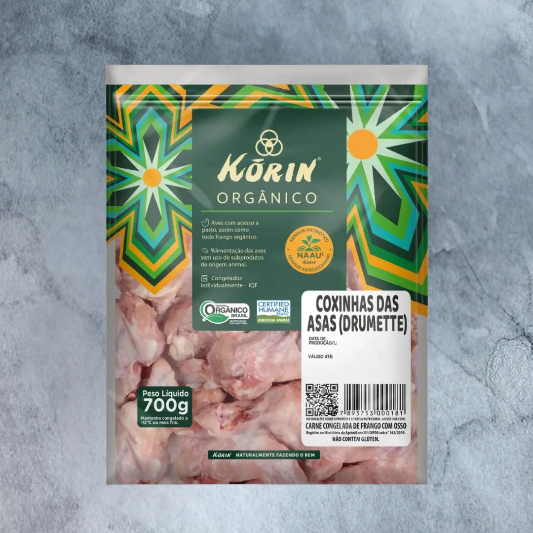 Desfrute de uma coxinha da asa de frango com um sabor incomparável, que vem de uma criação livre de antibióticos, hormônios e transgênicos. Nossos frangos são criados com base nos princípios da agricultura natural, garantindo o bem-estar animal e a máxima qualidade do produto. Perfeita para aperitivos, churrascos e refeições em família, a coxinha da asa Korin oferece uma experiência culinária que une sabor, saúde e responsabilidade.