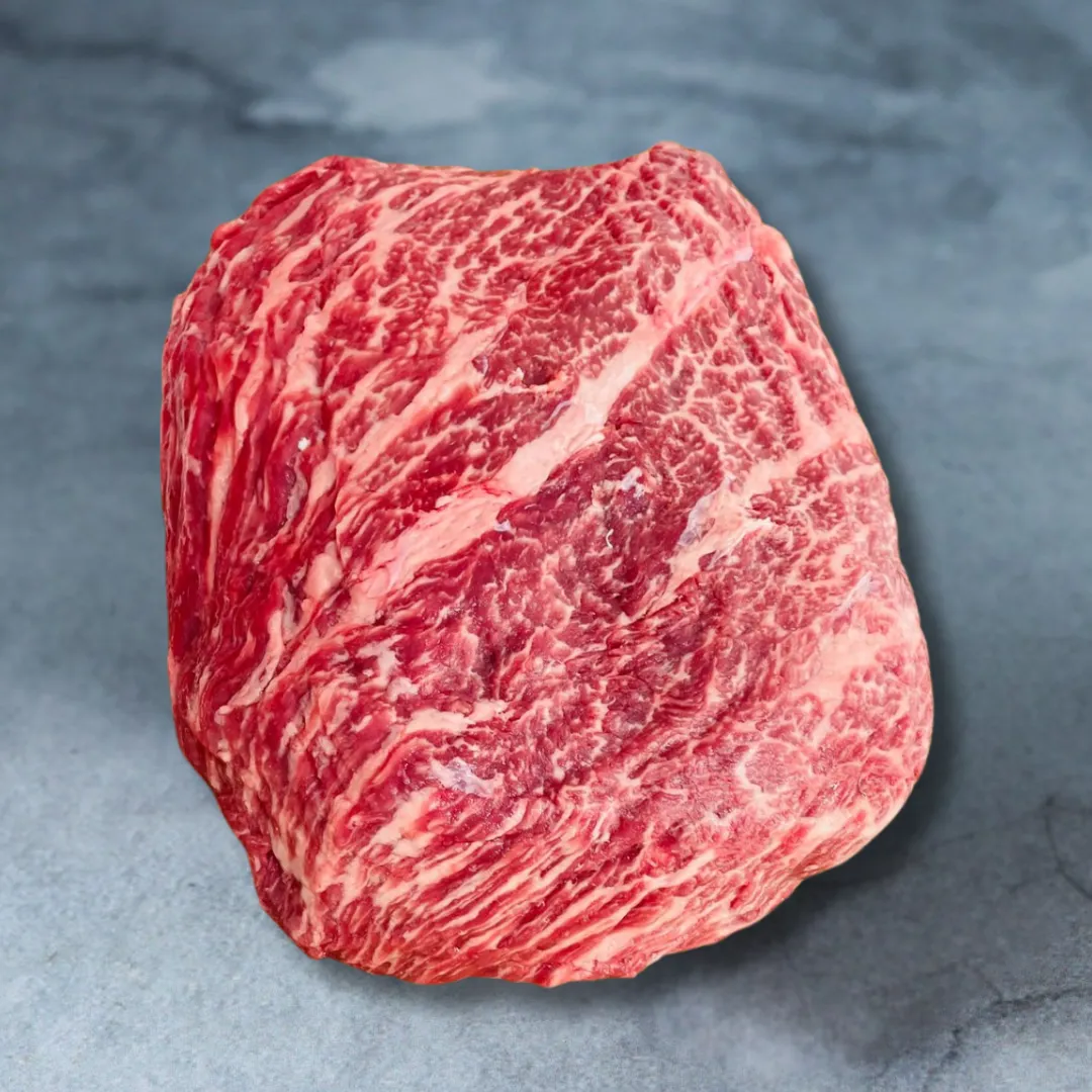 É o miolo do acém sem o osso. Muito rico em gordura marmorizada (entremeada à carne), é um corte muito suculento. Corte de dianteiro certificado Angus.